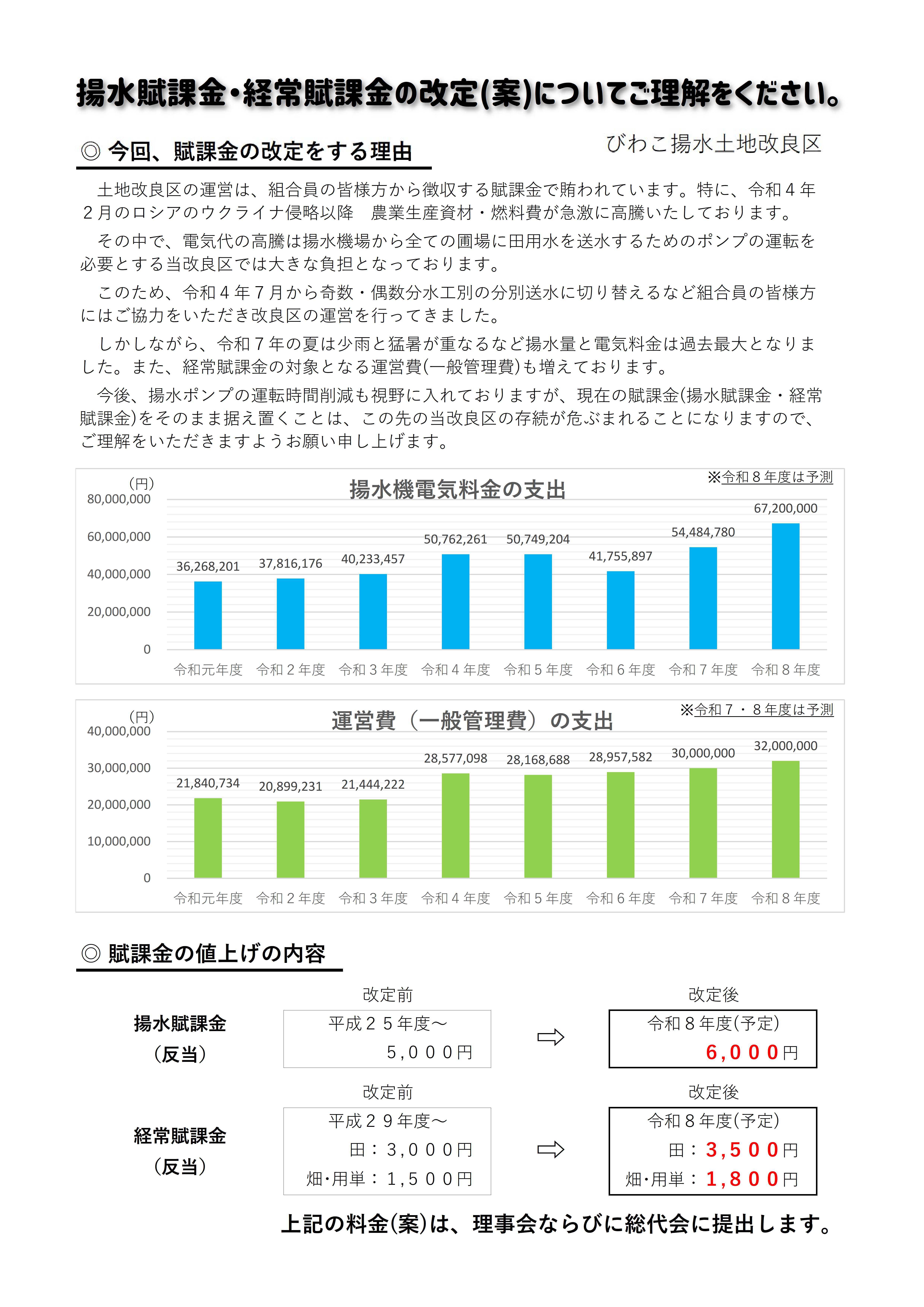 揚水賦課金・経常賦課金の改定(案)について